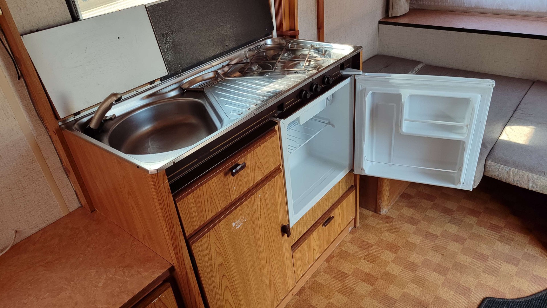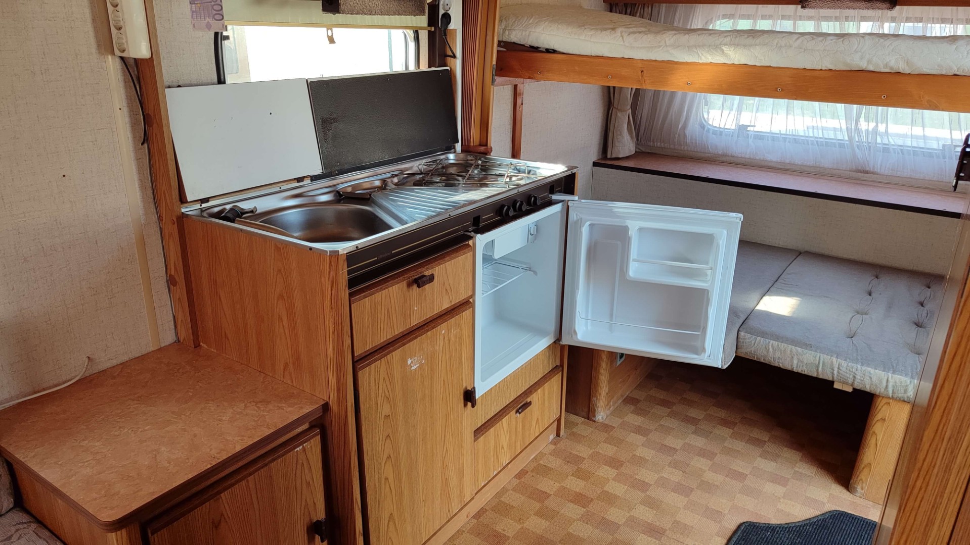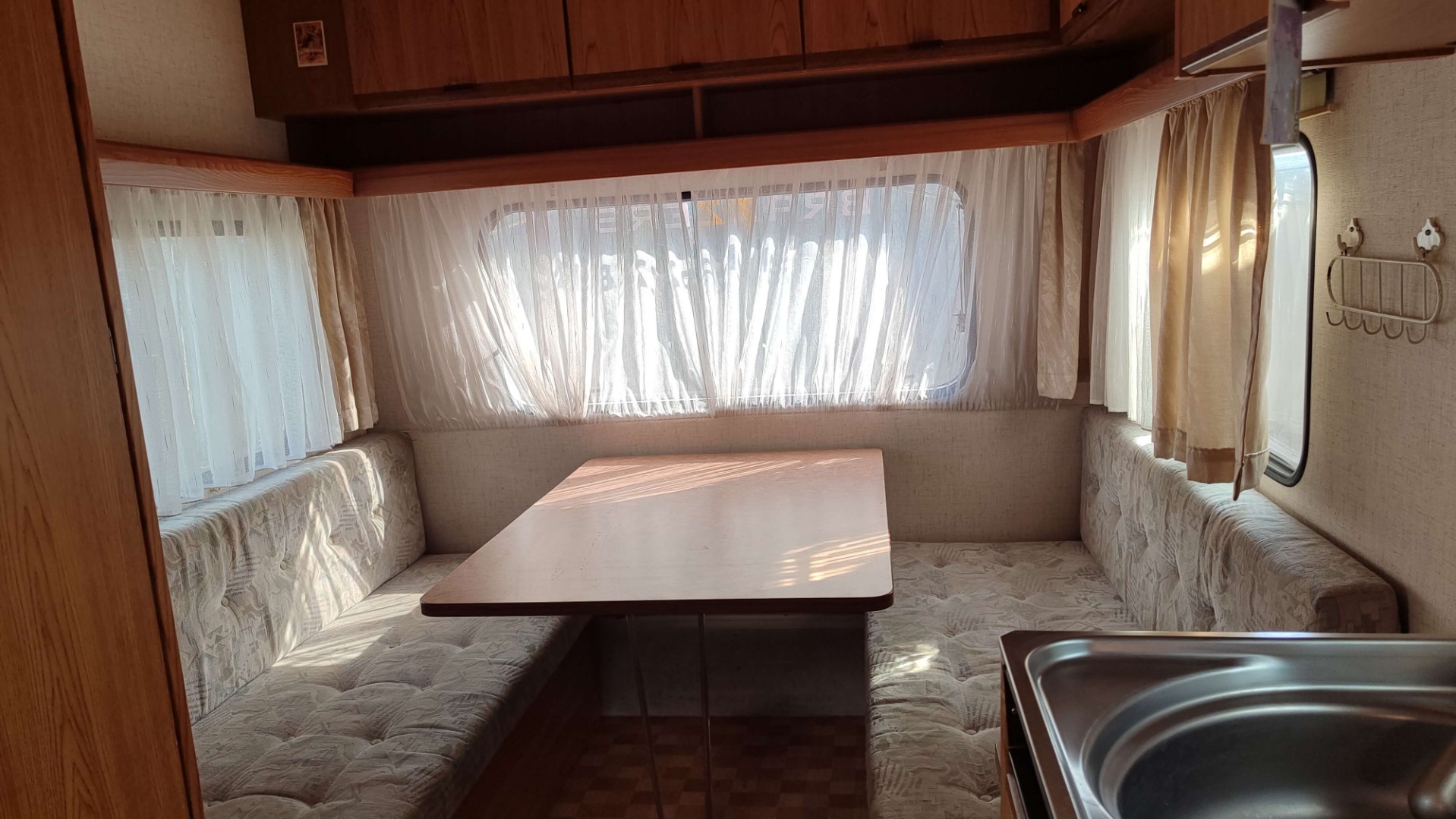 Burstner mini Club — компактный и практичный прицеп-дача, созданный для отдыха на природе компанией до четырех человек. В таком 5-метровом прицепе предусмотрено максимально разумное использование пространства: есть удобная кухня с трехконфорочной газовой плитой и холодильником, поддерживающем свежесть продуктов на газу и электричестве 220В/12В. Емкий бак (75 литров) обеспечит водой в пути.