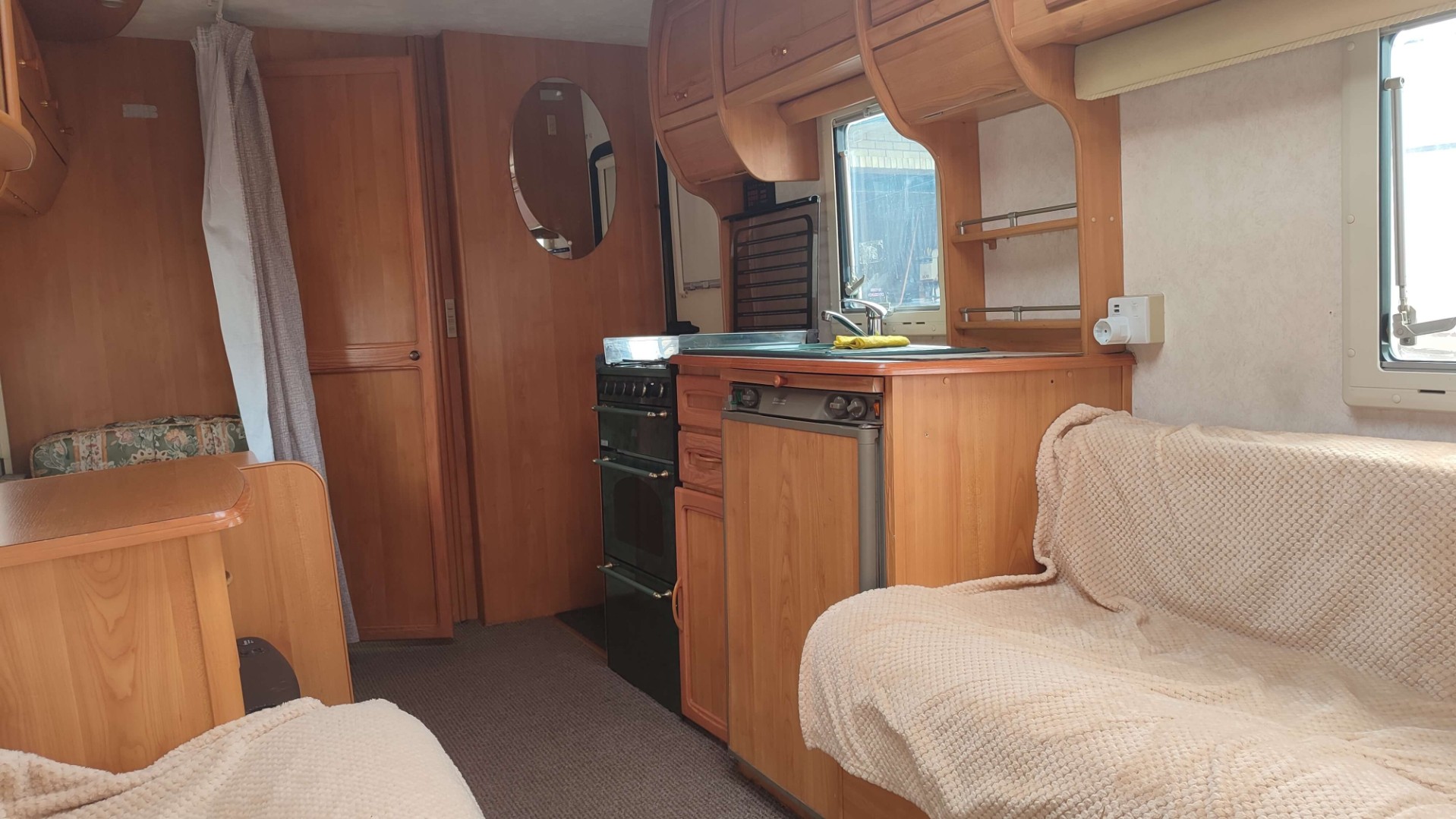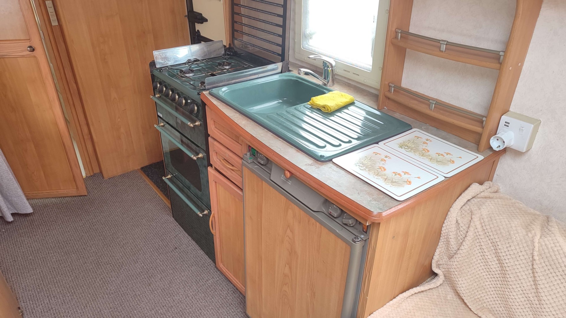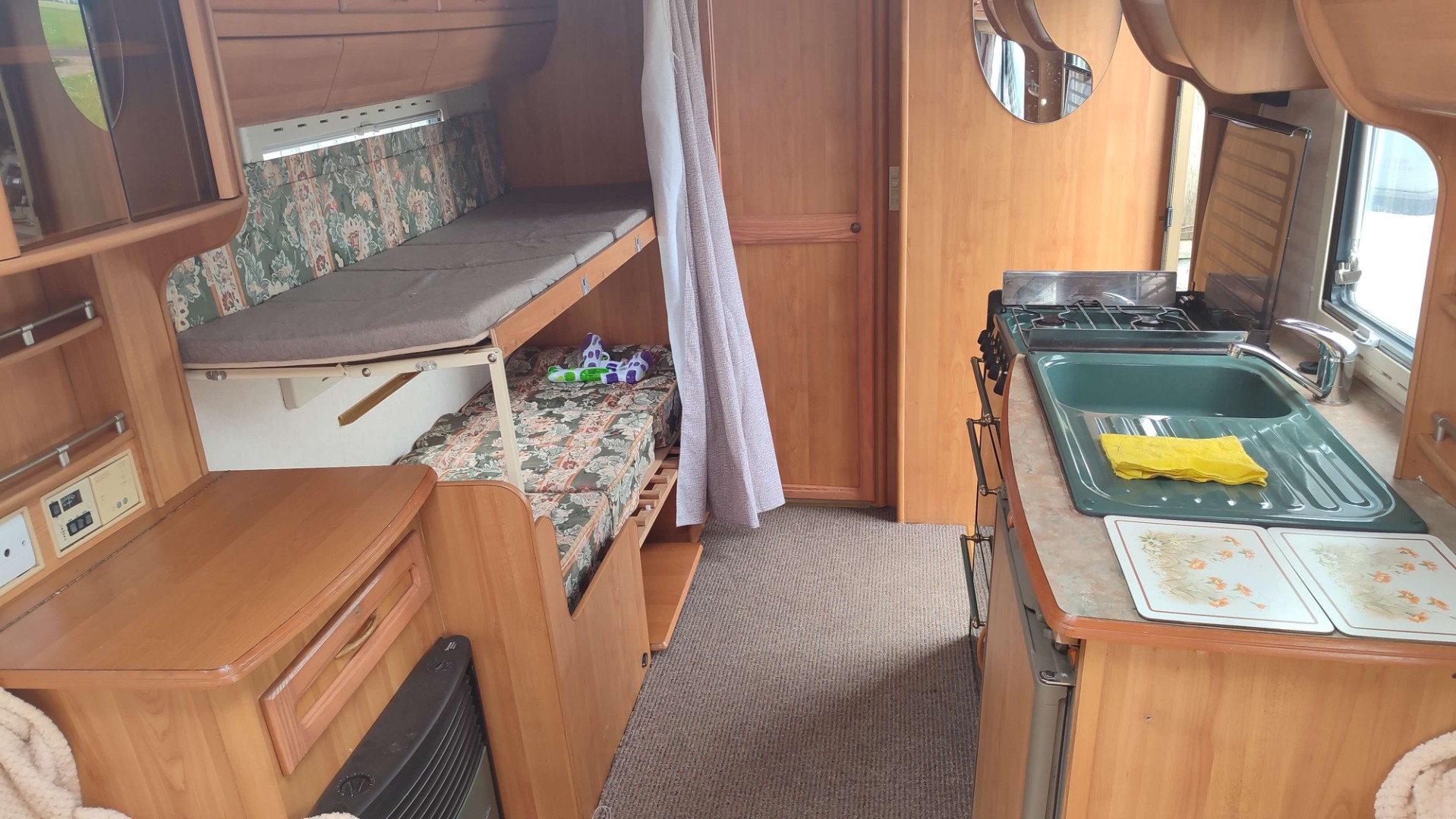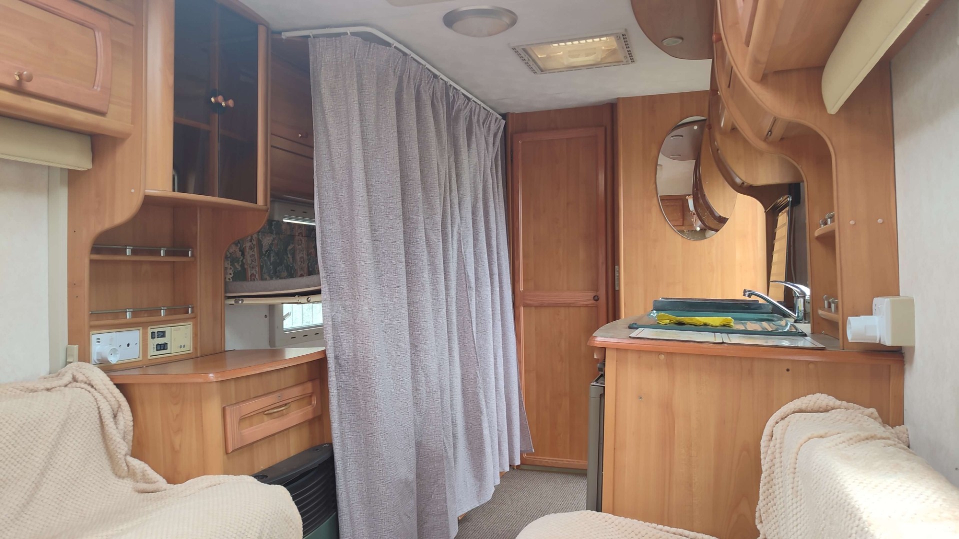 Горячая вода доступна всегда благодаря встроенной системе нагрева, что позволяет не только принять душ, но и без проблем мыть посуду. Кухонный уголок оснащён газовой плитой с четырьмя конфорками, духовкой и грилем — можно готовить любые блюда даже в путешествии. Для хранения продуктов имеется универсальный холодильник, работающий как от газа, так и от электричества (220В/12В).