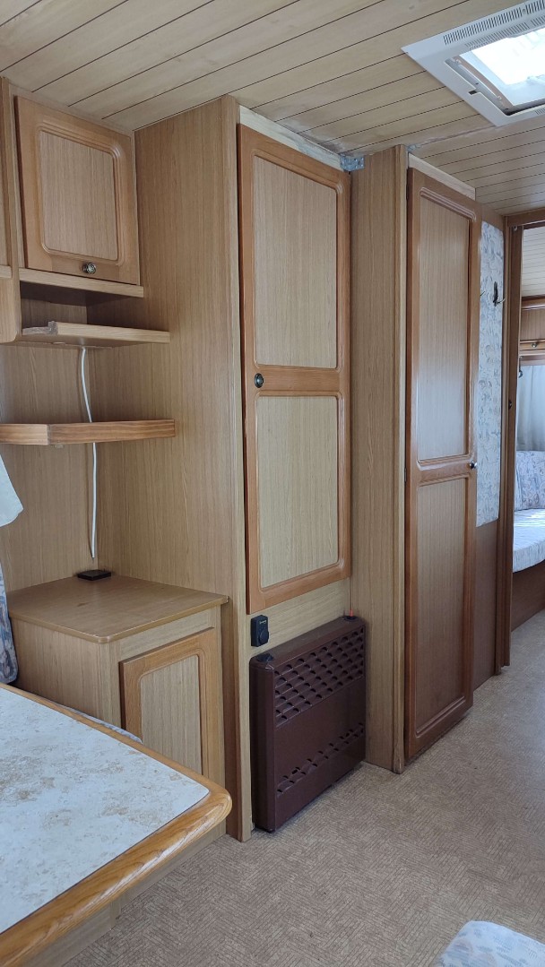 Автономную жизнь обеспечивает аккумулятор на 12В — можно пользоваться освещением, заряжать телефоны или ноутбуки вне зависимости от наличия внешнего питания. В холодный период времени комфорт внутри гарантирует газовый отопитель, поддерживающий тепло даже при минусовых температурах. DETHLEFFS RM5 — надежное и удобное решение для семейных путешествий или отдыха с друзьями.